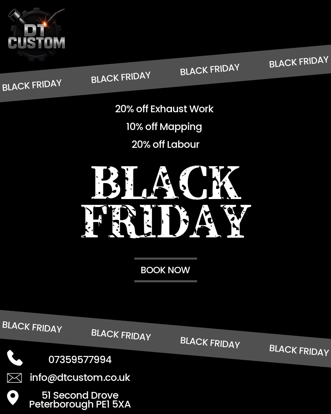 Black Friday just got better at DT CUSTOM! Enjoy 20% off all exhaust work, 10% off mapping, and 20% off labour. Don’t miss out . These exclusive deals run from Friday 28th November to Friday 8th December 2025.